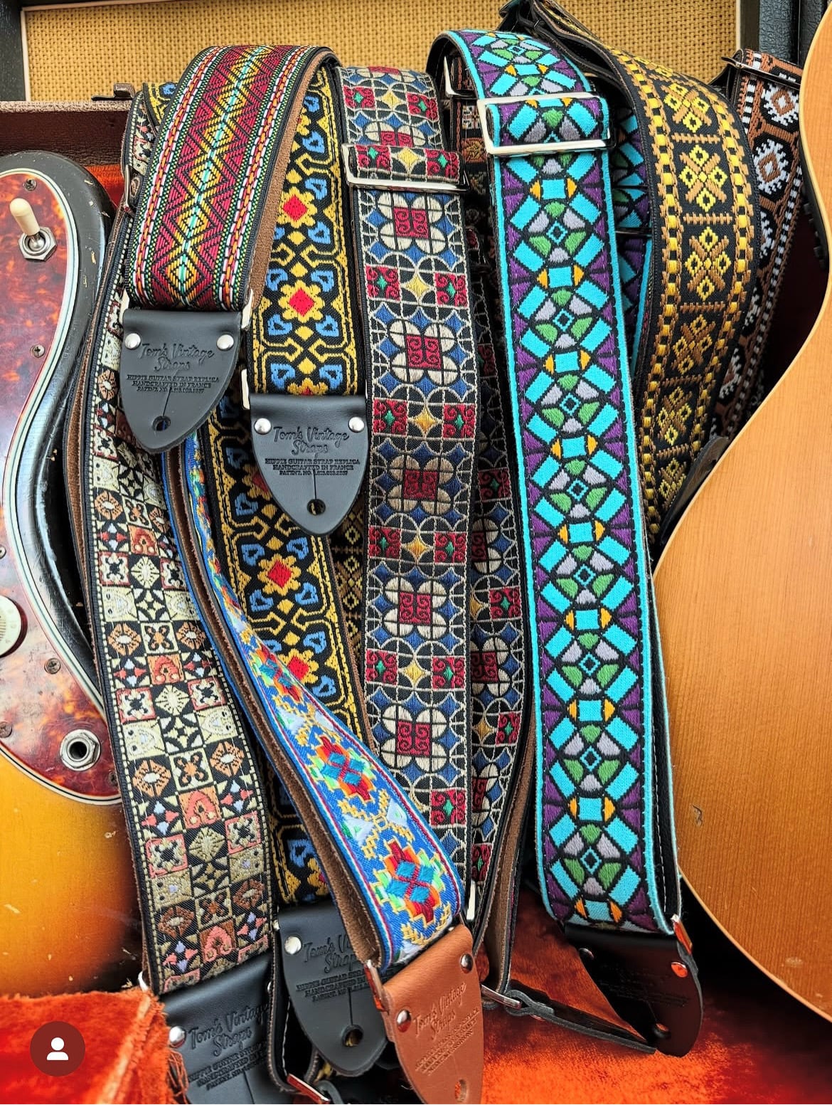 Tom's Vintage Straps Gold 'Woodstock' ハンドメイド ギターストラップ 本革エンド フランス製