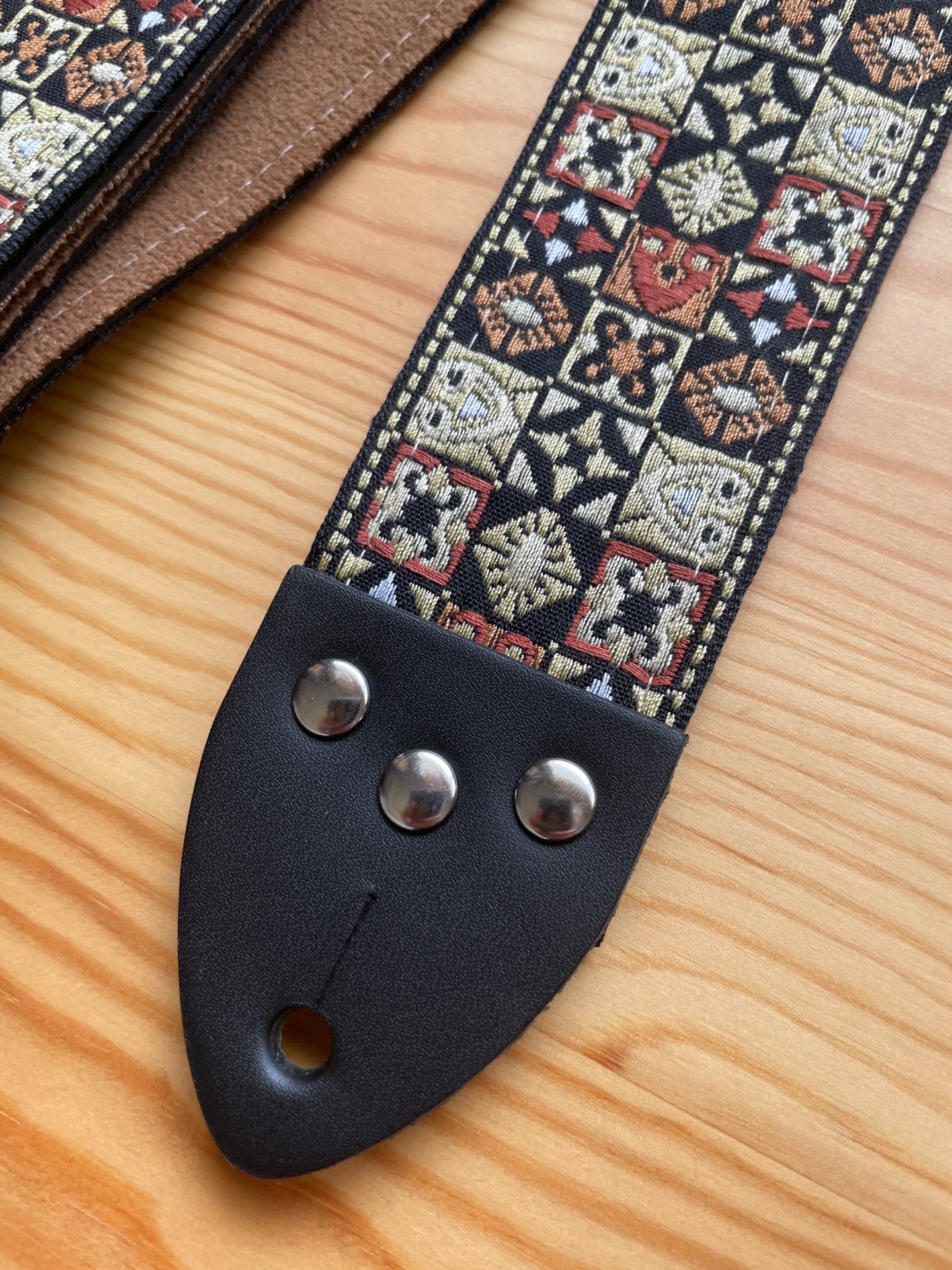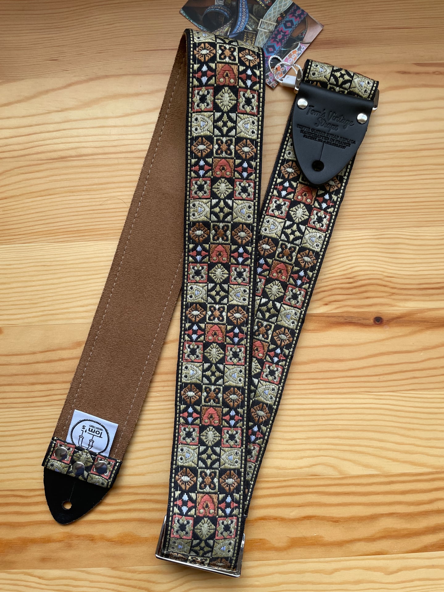 Tom’s Vintage Strapsはフランス、ストラスブールの小さな工房で一つ一つ丁寧に手作りされたギターストラップです。60年代から70年代にかけて数え切れないほどの象徴的なギタリスト(例えばエリック・クラプトン、ジミー・ペイジ、ジミ・ヘンドリックス、トム・ペティ、ジョン・メイヤー、キース・リチャーズ、カート・コバーン、ロビー・クリーガー、ロリー・ギャラガー、ボブ・ディラン、ジョー・ウォルシュ、ジョニ・ミッチェルなど)の使用によって有名になったヒッピー織りストラップの、最も本物に近い現代版レプリカです。主に60年代から70年代の New Old Stock (NOS) ファブリックを使用しており、ストラップエンドのレザーはカット、パンチング、仕上げの全てを手作業で行っています。