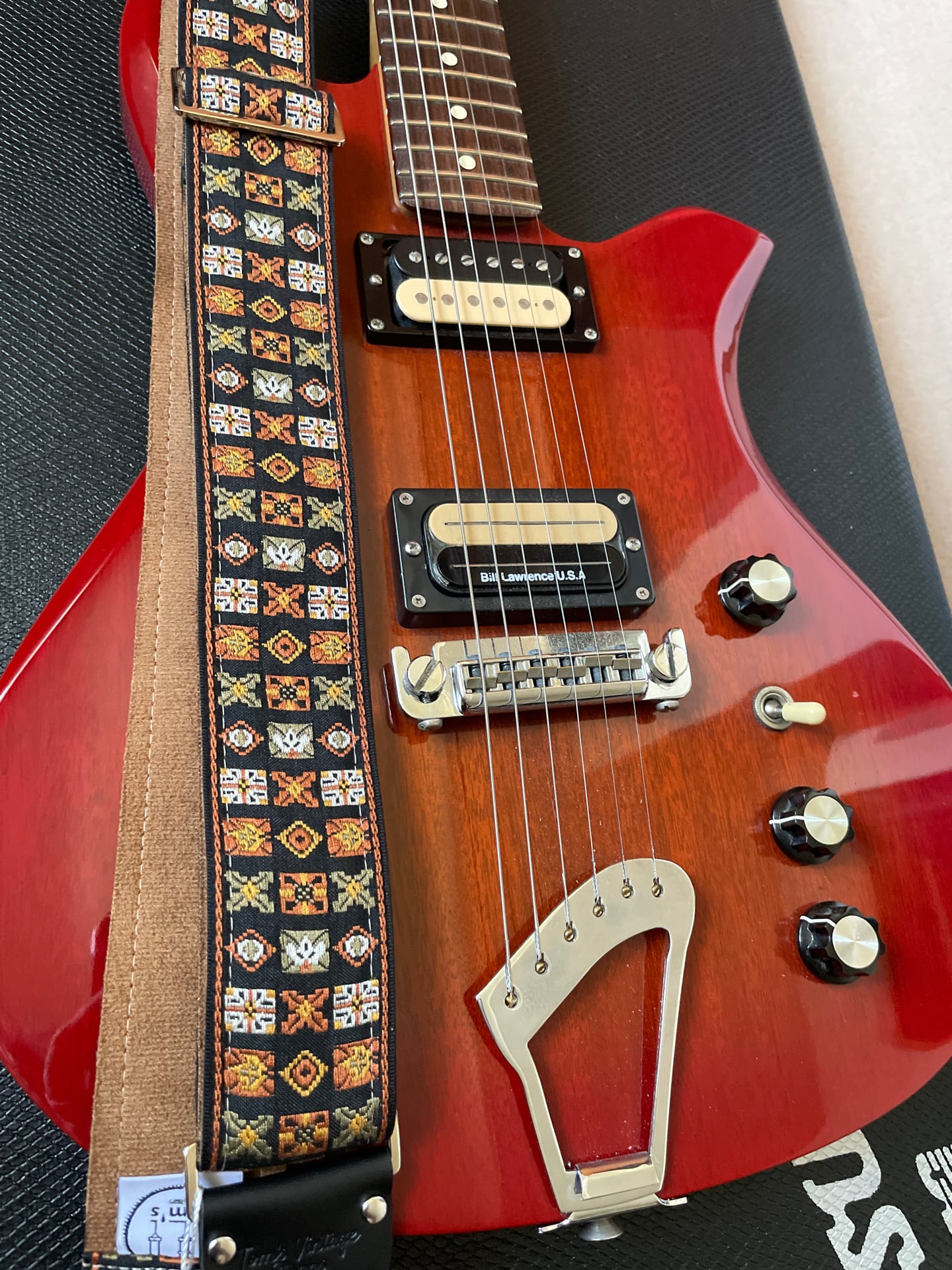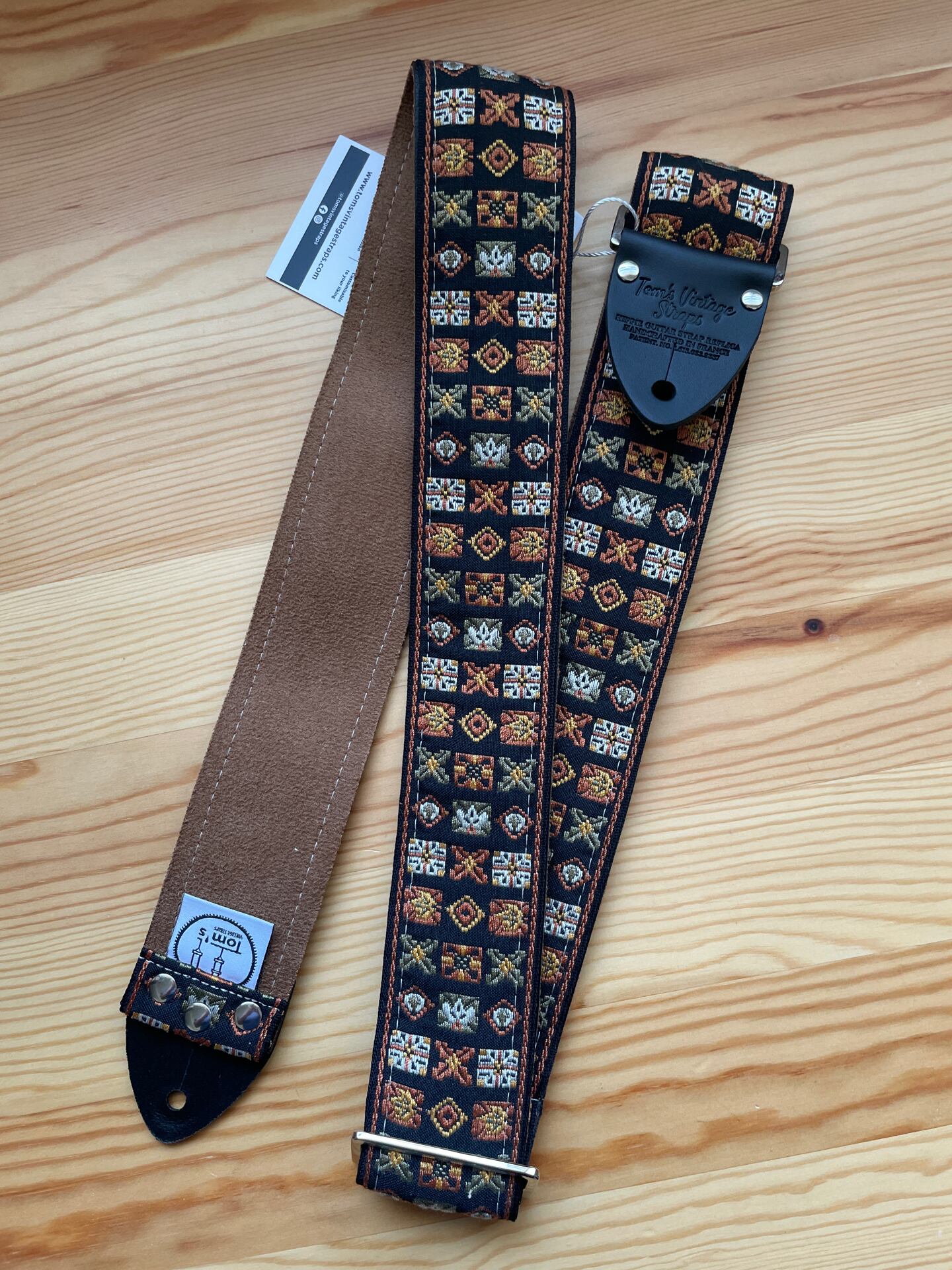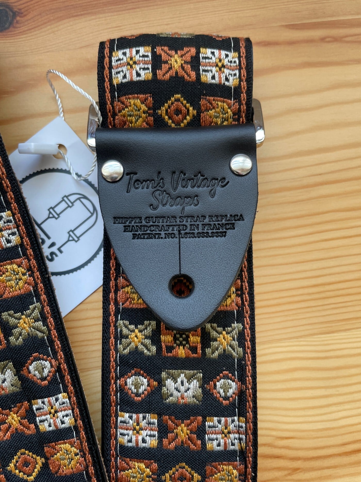 Tom’s Vintage Strapsはフランス、ストラスブールの小さな工房で一つ一つ丁寧に手作りされたギターストラップです。60年代から70年代にかけて数え切れないほどの象徴的なギタリスト(例えばエリック・クラプトン、ジミー・ペイジ、ジミ・ヘンドリックス、トム・ペティ、ジョン・メイヤー、キース・リチャーズ、カート・コバーン、ロビー・クリーガー、ロリー・ギャラガー、ボブ・ディラン、ジョー・ウォルシュ、ジョニ・ミッチェルなど)の使用によって有名になったヒッピー織りストラップの、最も本物に近い現代版レプリカです。主に60年代から70年代の New Old Stock (NOS) ファブリックを使用しており、ストラップエンドのレザーはカット、パンチング、仕上げの全てを手作業で行っています。