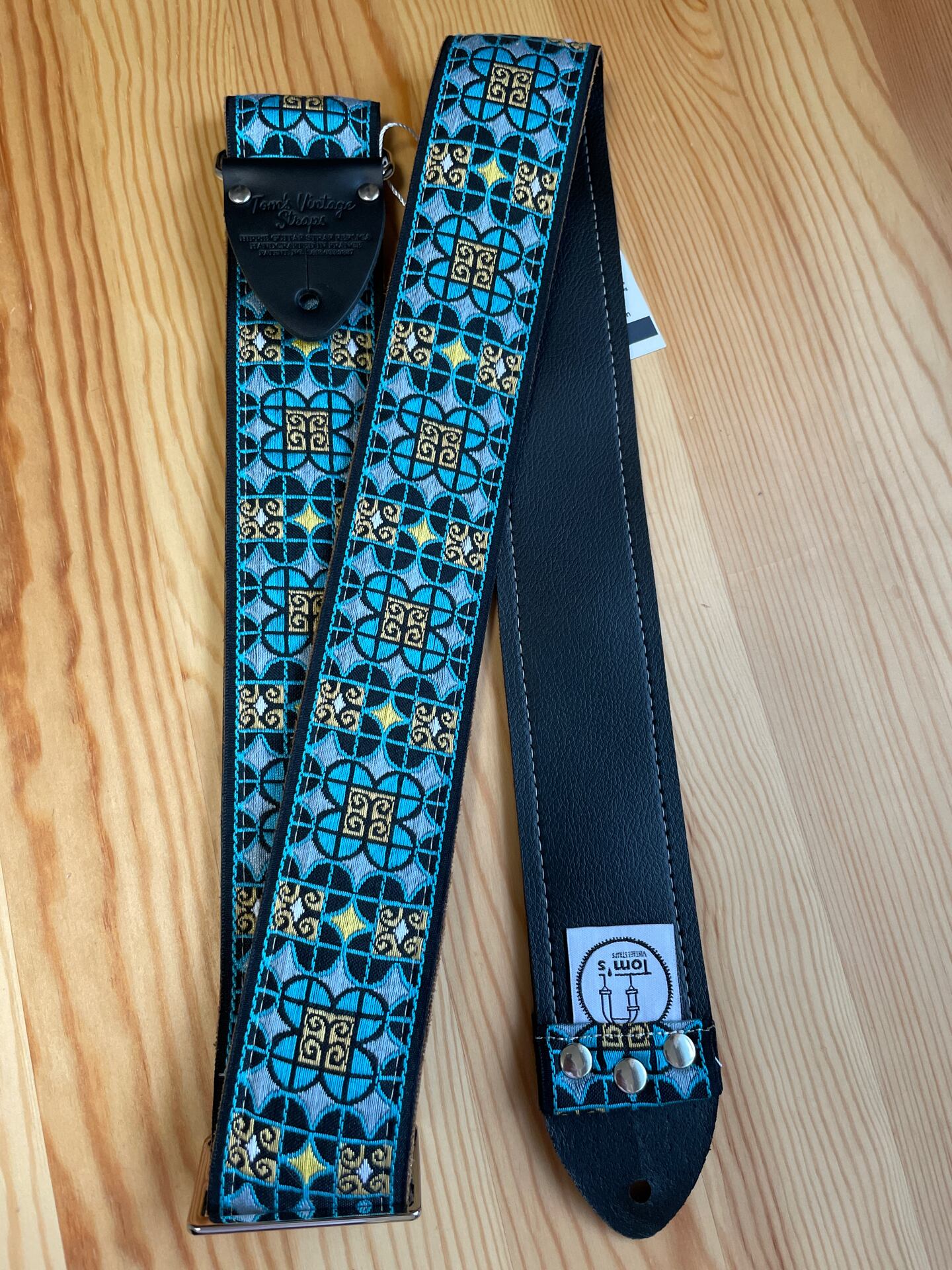 Tom’s Vintage Strapsはフランス、ストラスブールの小さな工房で一つ一つ丁寧に手作りされたギターストラップです。60年代から70年代にかけて数え切れないほどの象徴的なギタリスト(例えばエリック・クラプトン、ジミー・ペイジ、ジミ・ヘンドリックス、トム・ペティ、ジョン・メイヤー、キース・リチャーズ、カート・コバーン、ロビー・クリーガー、ロリー・ギャラガー、ボブ・ディラン、ジョー・ウォルシュ、ジョニ・ミッチェルなど)の使用によって有名になったヒッピー織りストラップの、最も本物に近い現代版レプリカです。主に60年代から70年代の New Old Stock (NOS) ファブリックを使用しており、ストラップエンドのレザーはカット、パンチング、仕上げの全てを手作業で行っています。