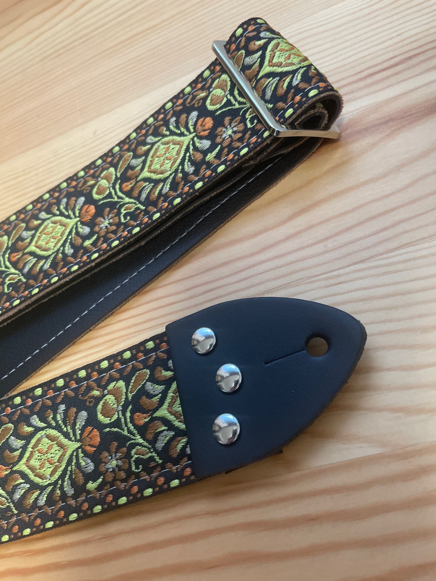 Tom’s Vintage Strapsはフランス、ストラスブールの小さな工房で一つ一つ丁寧に手作りされたギターストラップです。60年代から70年代にかけて数え切れないほどの象徴的なギタリスト(例えばエリック・クラプトン、ジミー・ペイジ、ジミ・ヘンドリックス、トム・ペティ、ジョン・メイヤー、キース・リチャーズ、カート・コバーン、ロビー・クリーガー、ロリー・ギャラガー、ボブ・ディラン、ジョー・ウォルシュ、ジョニ・ミッチェルなど)の使用によって有名になったヒッピー織りストラップの、最も本物に近い現代版レプリカです。主に60年代から70年代の New Old Stock (NOS) ファブリックを使用しており、ストラップエンドのレザーはカット、パンチング、仕上げの全てを手作業で行っています。