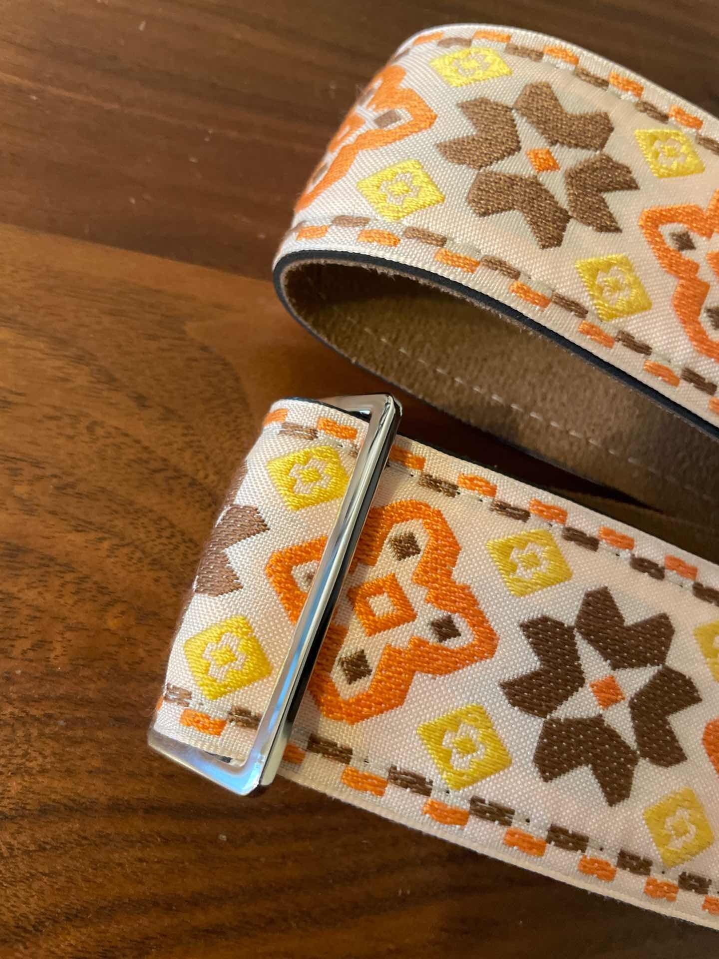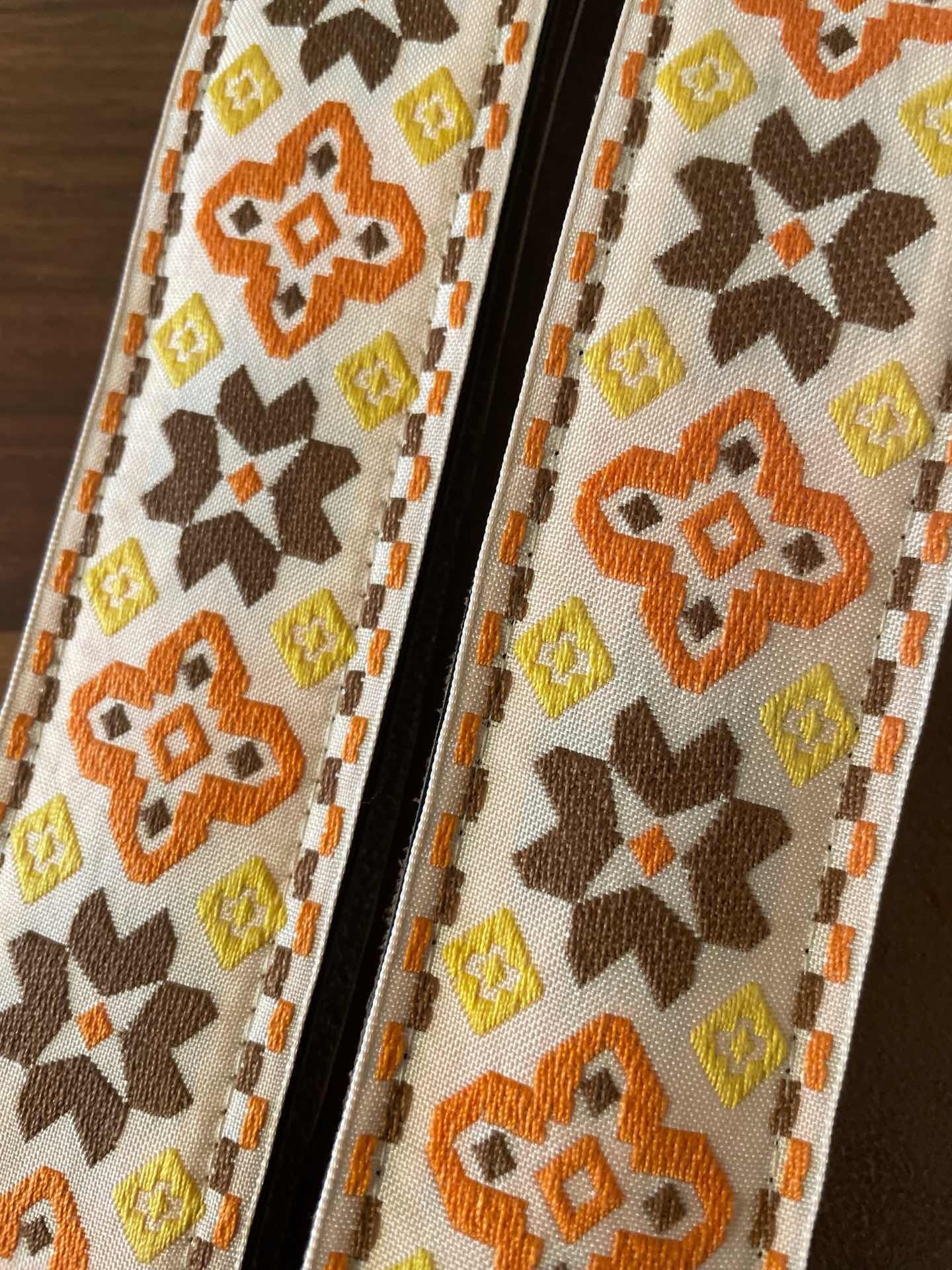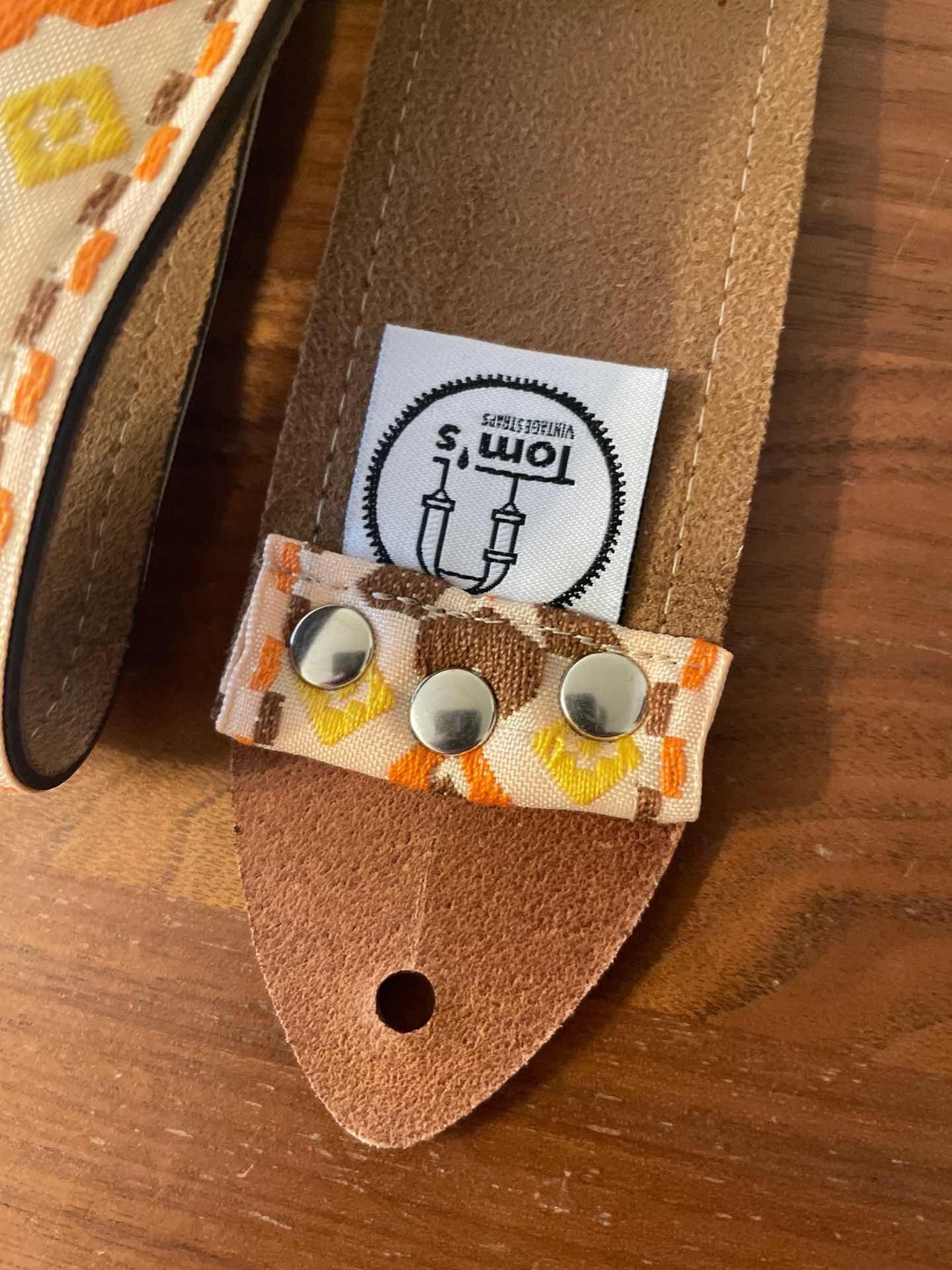 Tom’s Vintage Strapsはフランス、ストラスブールの小さな工房で一つ一つ丁寧に手作りされたギターストラップです。60年代から70年代にかけて数え切れないほどの象徴的なギタリスト(例えばエリック・クラプトン、ジミー・ペイジ、ジミ・ヘンドリックス、トム・ペティ、ジョン・メイヤー、キース・リチャーズ、カート・コバーン、ロビー・クリーガー、ロリー・ギャラガー、ボブ・ディラン、ジョー・ウォルシュ、ジョニ・ミッチェルなど)の使用によって有名になったヒッピー織りストラップの、最も本物に近い現代版レプリカです。主に60年代から70年代の New Old Stock (NOS) ファブリックを使用しており、ストラップエンドのレザーはカット、パンチング、仕上げの全てを手作業で行っています。