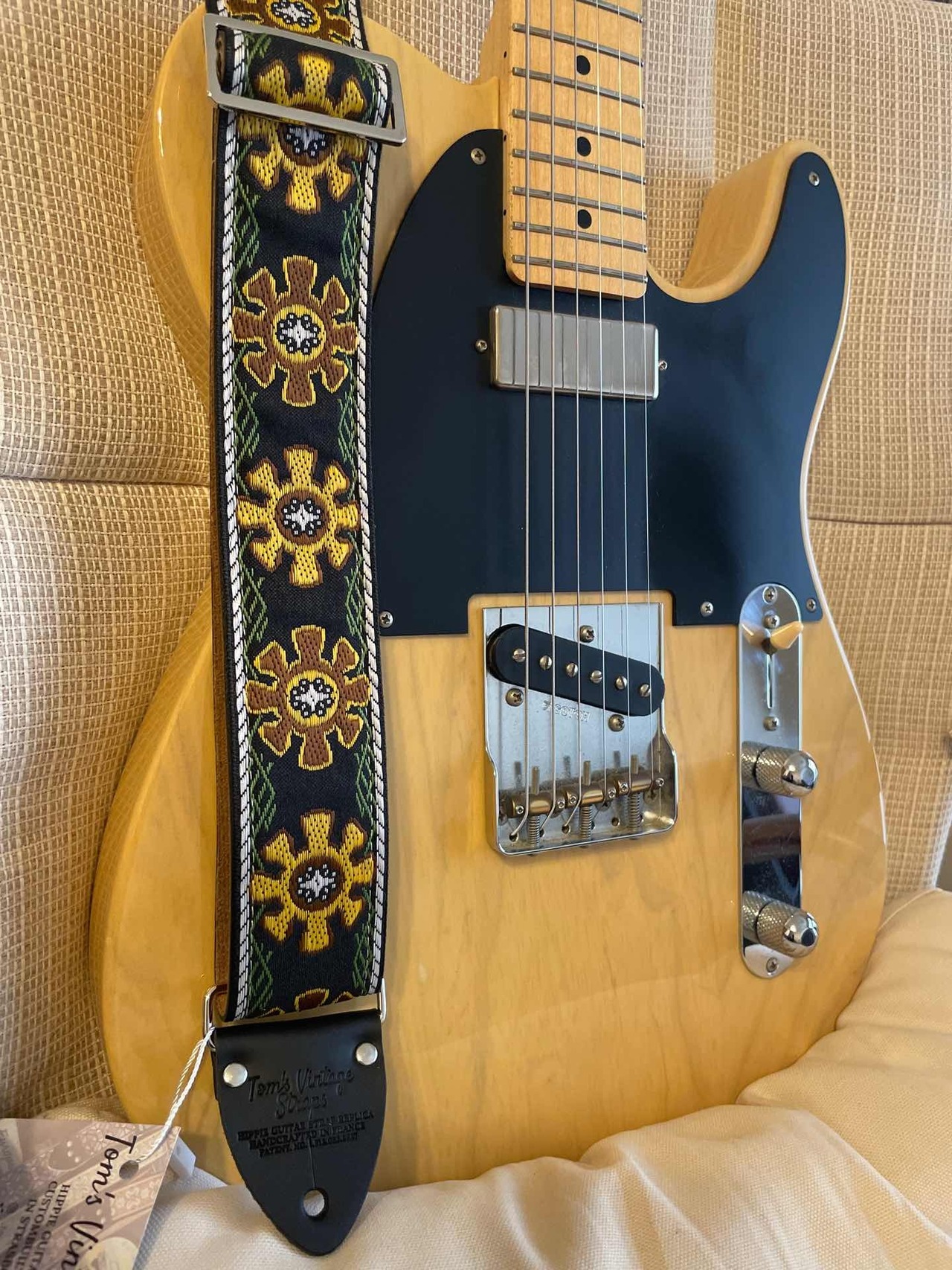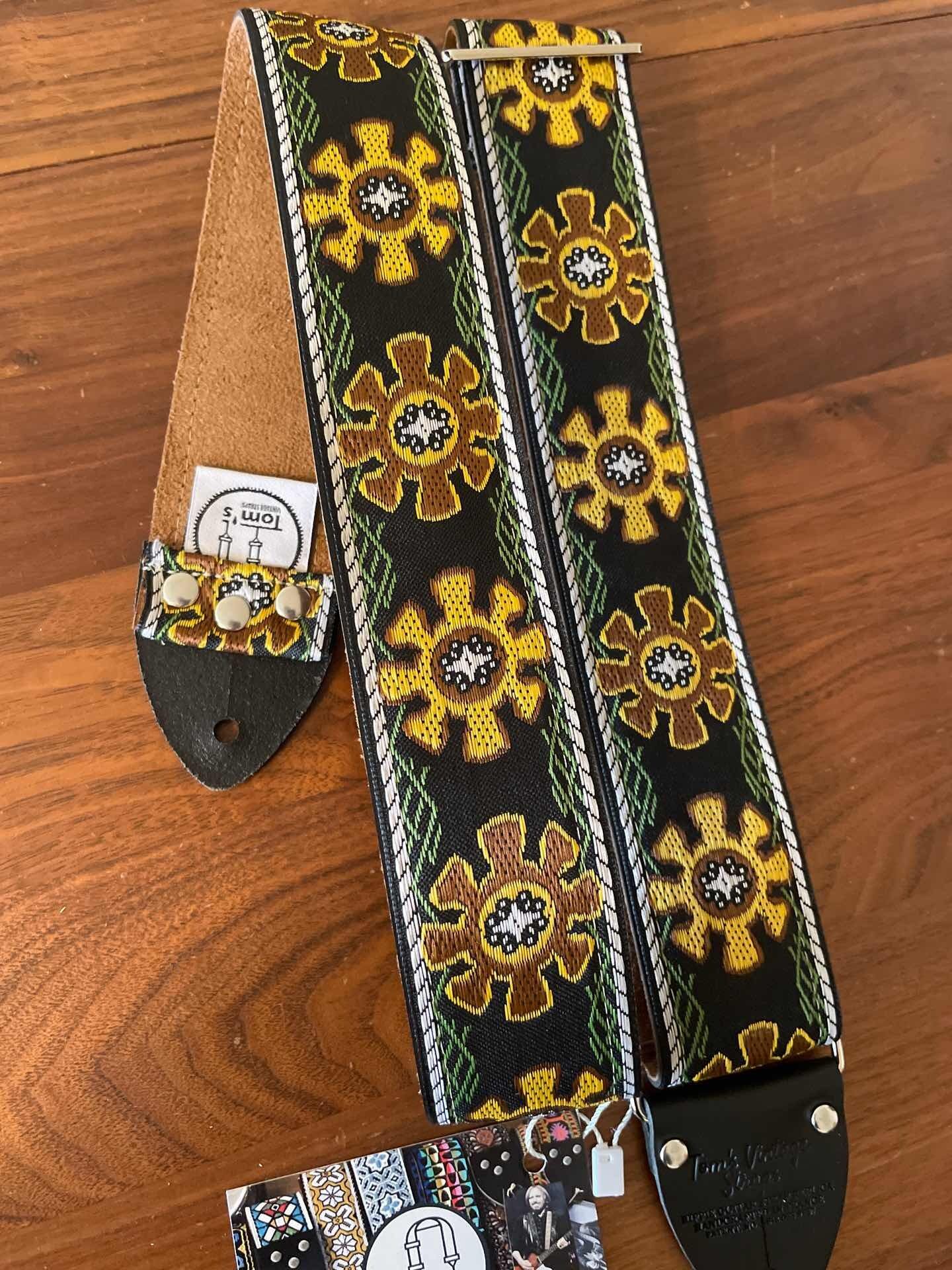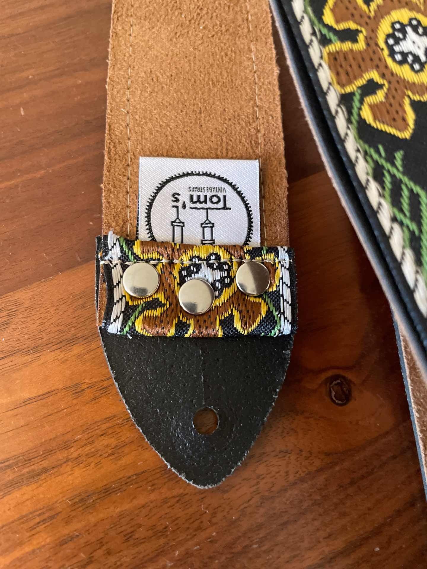 Tom’s Vintage Strapsはフランス、ストラスブールの小さな工房で一つ一つ丁寧に手作りされたギターストラップです。60年代から70年代にかけて数え切れないほどの象徴的なギタリスト(例えばエリック・クラプトン、ジミー・ペイジ、ジミ・ヘンドリックス、トム・ペティ、ジョン・メイヤー、キース・リチャーズ、カート・コバーン、ロビー・クリーガー、ロリー・ギャラガー、ボブ・ディラン、ジョー・ウォルシュ、ジョニ・ミッチェルなど)の使用によって有名になったヒッピー織りストラップの、最も本物に近い現代版レプリカです。主に60年代から70年代の New Old Stock (NOS) ファブリックを使用しており、ストラップエンドのレザーはカット、パンチング、仕上げの全てを手作業で行っています。