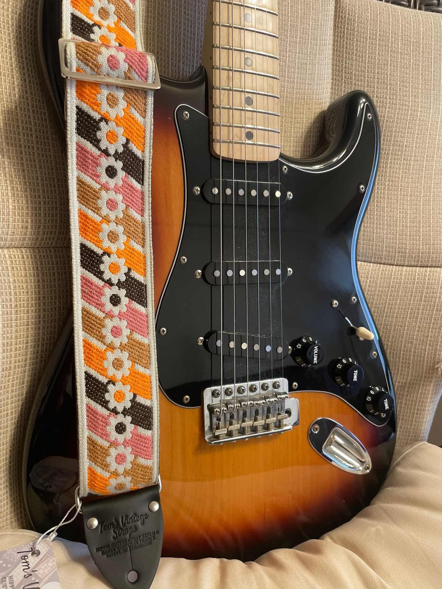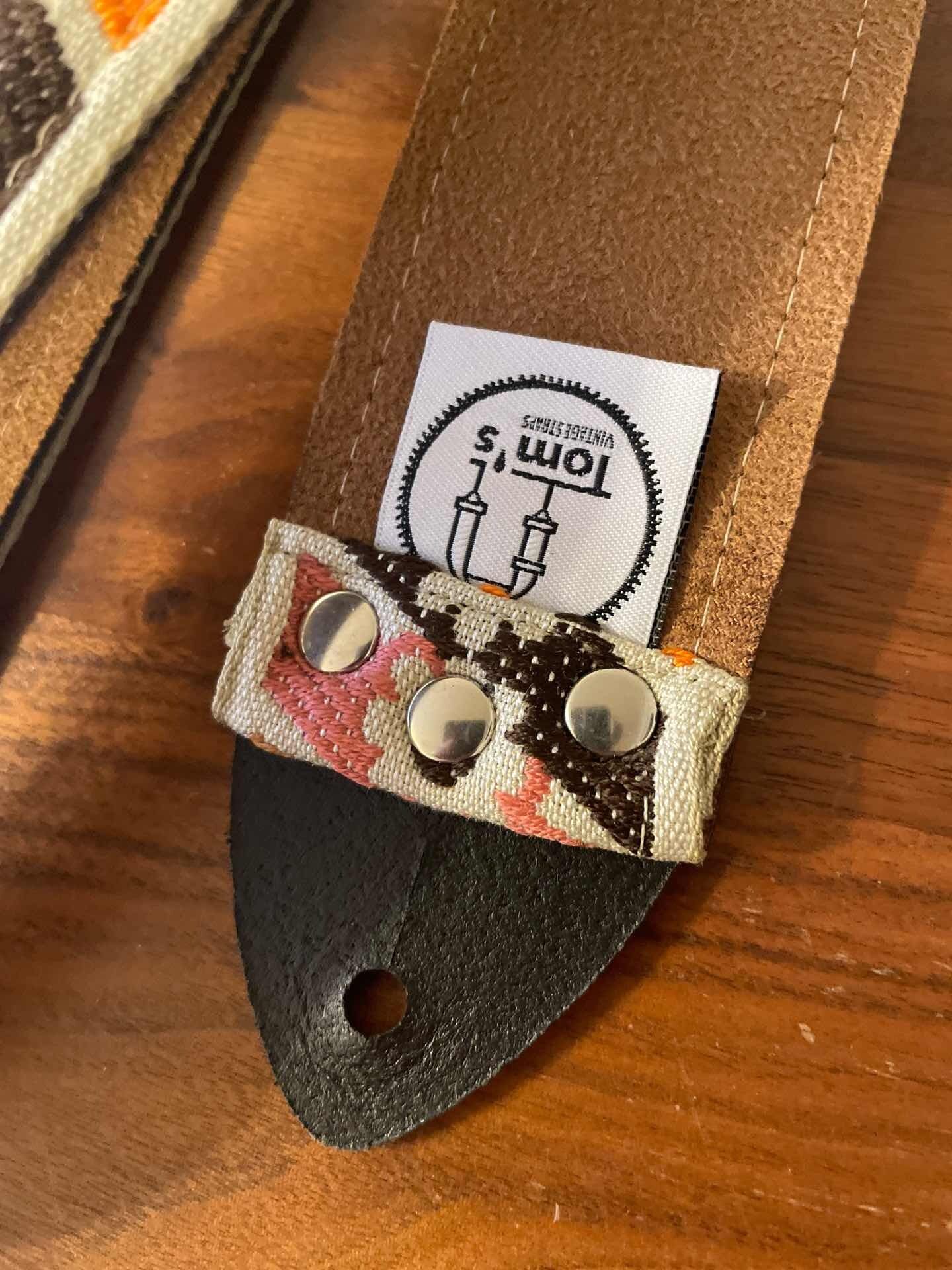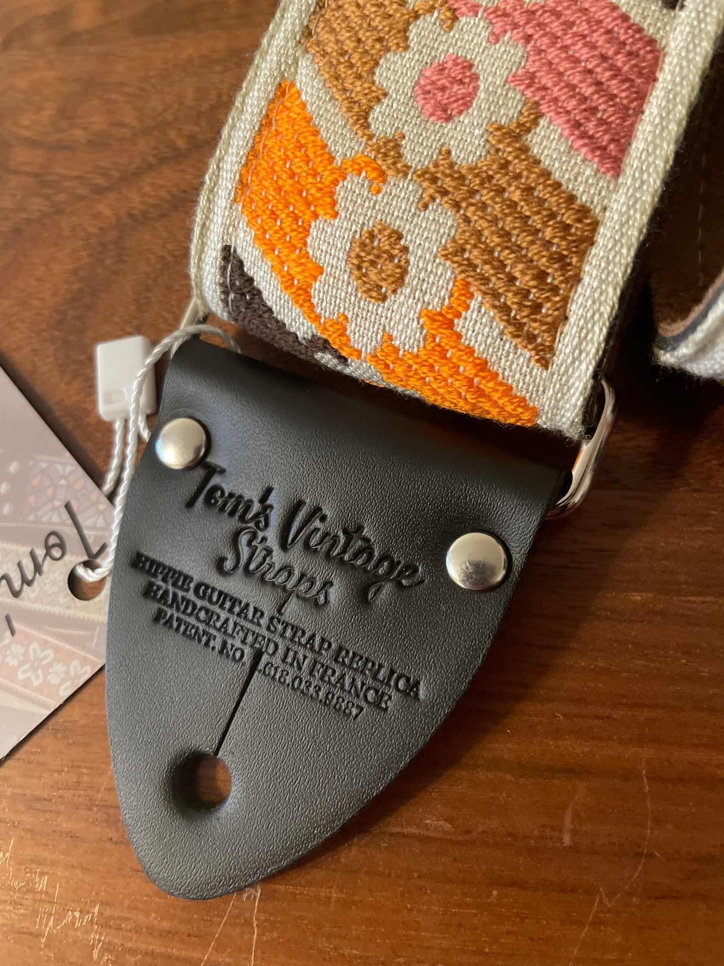 Tom’s Vintage Strapsはフランス、ストラスブールの小さな工房で一つ一つ丁寧に手作りされたギターストラップです。60年代から70年代にかけて数え切れないほどの象徴的なギタリスト(例えばエリック・クラプトン、ジミー・ペイジ、ジミ・ヘンドリックス、トム・ペティ、ジョン・メイヤー、キース・リチャーズ、カート・コバーン、ロビー・クリーガー、ロリー・ギャラガー、ボブ・ディラン、ジョー・ウォルシュ、ジョニ・ミッチェルなど)の使用によって有名になったヒッピー織りストラップの、最も本物に近い現代版レプリカです。主に60年代から70年代の New Old Stock (NOS) ファブリックを使用しており、ストラップエンドのレザーはカット、パンチング、仕上げの全てを手作業で行っています。