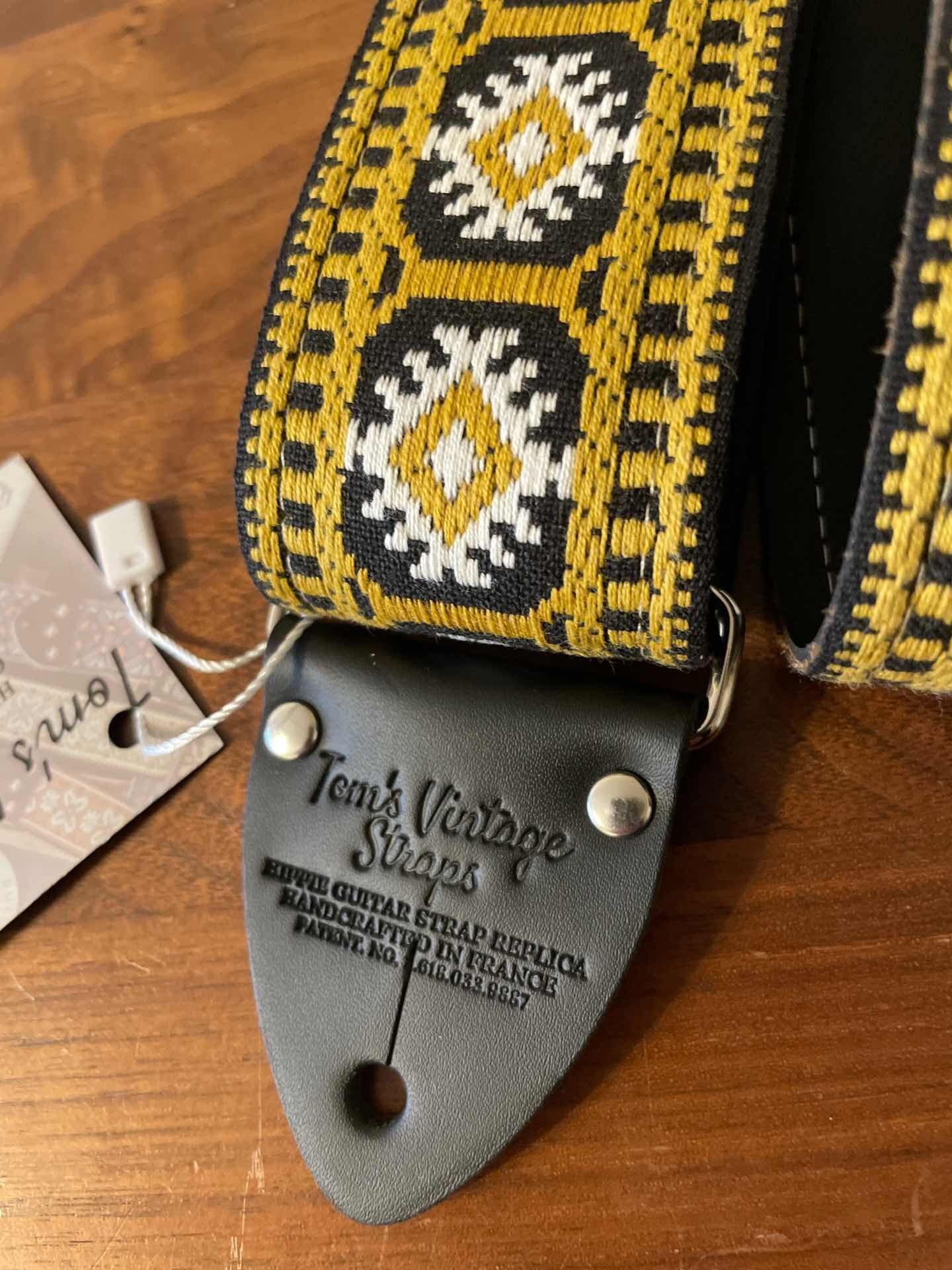 Tom’s Vintage Strapsはフランス、ストラスブールの小さな工房で一つ一つ丁寧に手作りされたギターストラップです。60年代から70年代にかけて数え切れないほどの象徴的なギタリスト(例えばエリック・クラプトン、ジミー・ペイジ、ジミ・ヘンドリックス、トム・ペティ、ジョン・メイヤー、キース・リチャーズ、カート・コバーン、ロビー・クリーガー、ロリー・ギャラガー、ボブ・ディラン、ジョー・ウォルシュ、ジョニ・ミッチェルなど)の使用によって有名になったヒッピー織りストラップの、最も本物に近い現代版レプリカです。主に60年代から70年代の New Old Stock (NOS) ファブリックを使用しており、ストラップエンドのレザーはカット、パンチング、仕上げの全てを手作業で行っています。