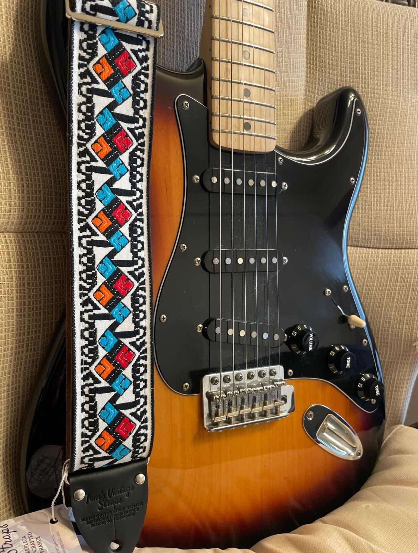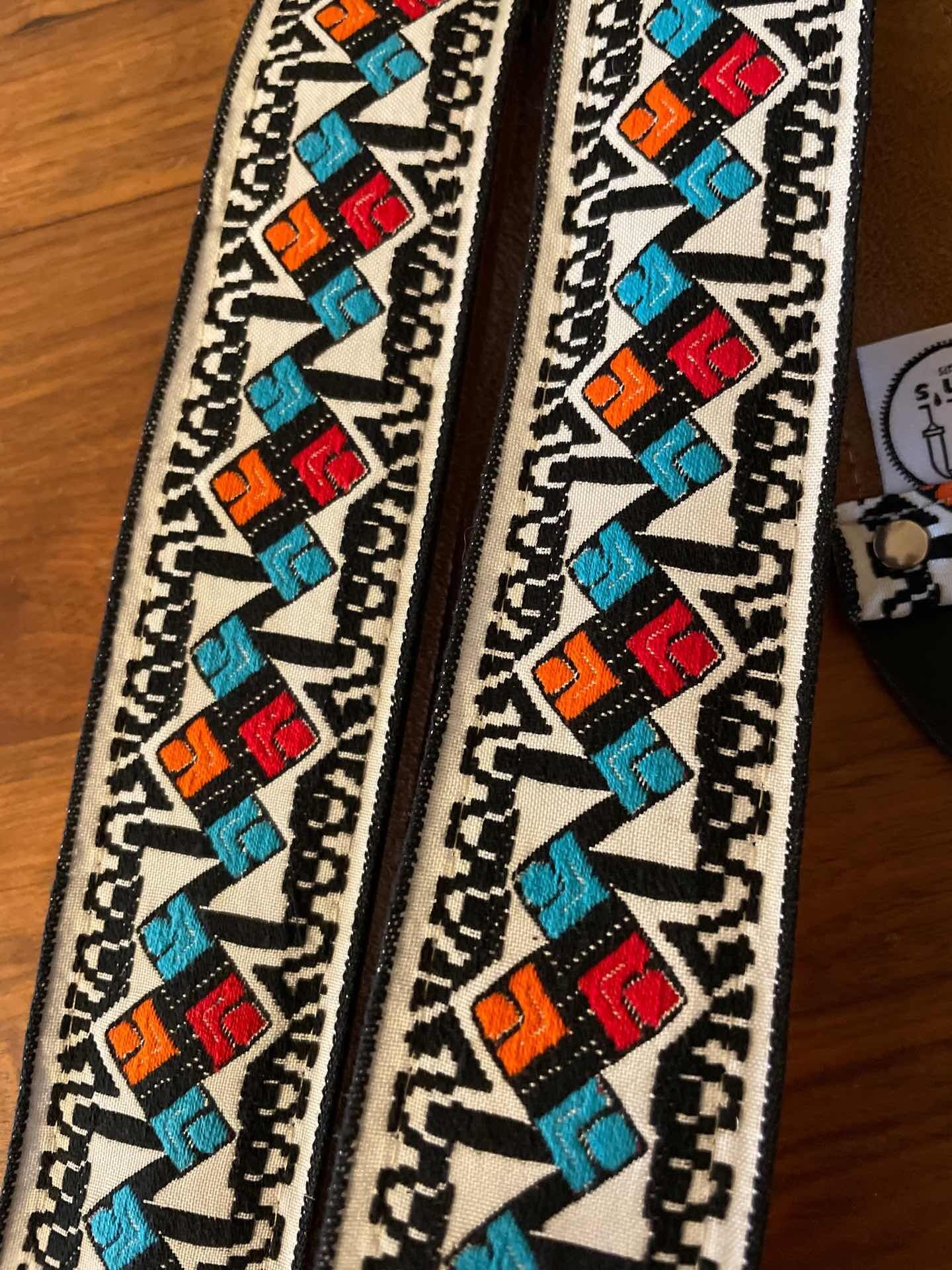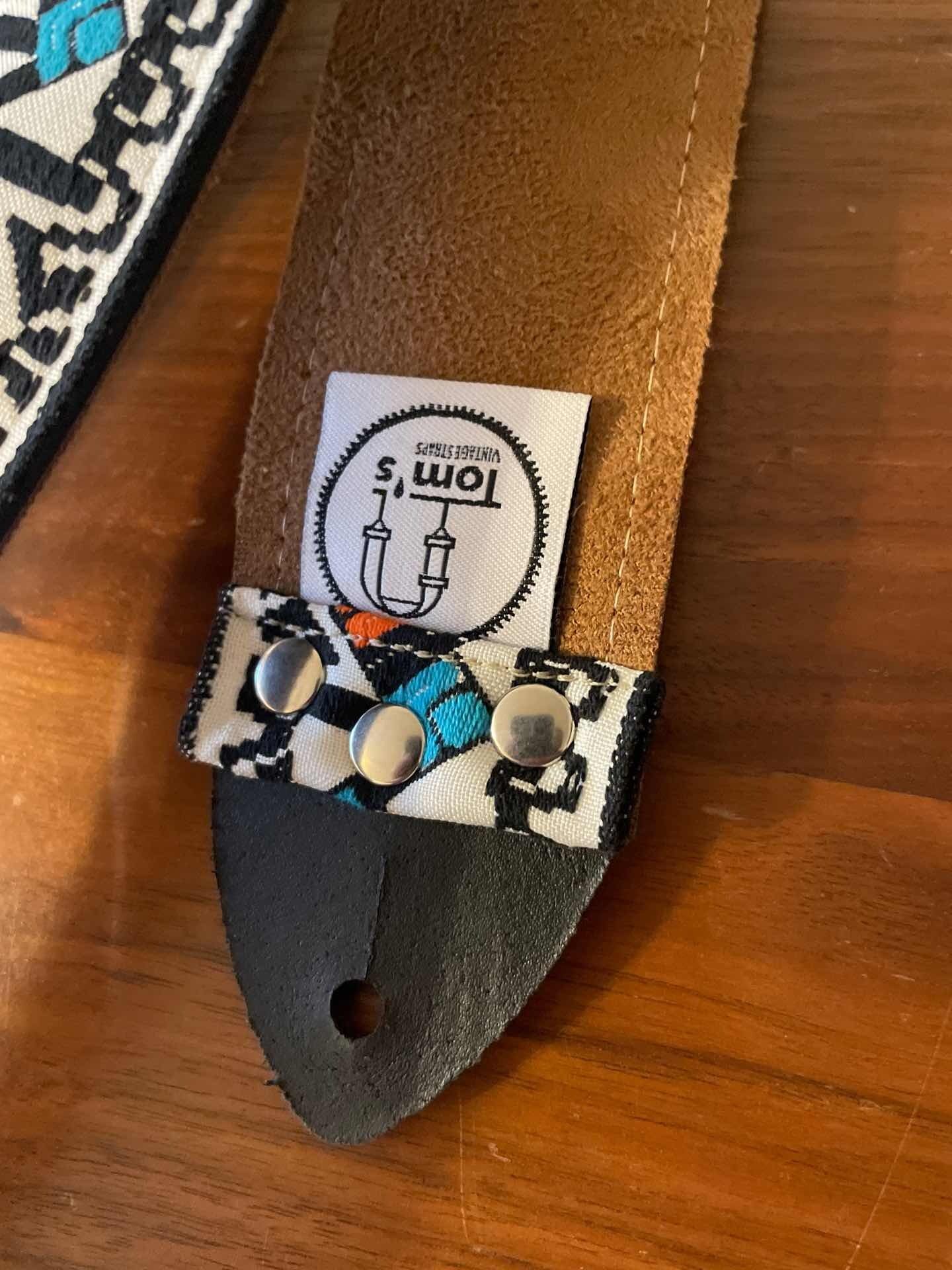 Tom’s Vintage Strapsはフランス、ストラスブールの小さな工房で一つ一つ丁寧に手作りされたギターストラップです。60年代から70年代にかけて数え切れないほどの象徴的なギタリスト(例えばエリック・クラプトン、ジミー・ペイジ、ジミ・ヘンドリックス、トム・ペティ、ジョン・メイヤー、キース・リチャーズ、カート・コバーン、ロビー・クリーガー、ロリー・ギャラガー、ボブ・ディラン、ジョー・ウォルシュ、ジョニ・ミッチェルなど)の使用によって有名になったヒッピー織りストラップの、最も本物に近い現代版レプリカです。主に60年代から70年代の New Old Stock (NOS) ファブリックを使用しており、ストラップエンドのレザーはカット、パンチング、仕上げの全てを手作業で行っています。
