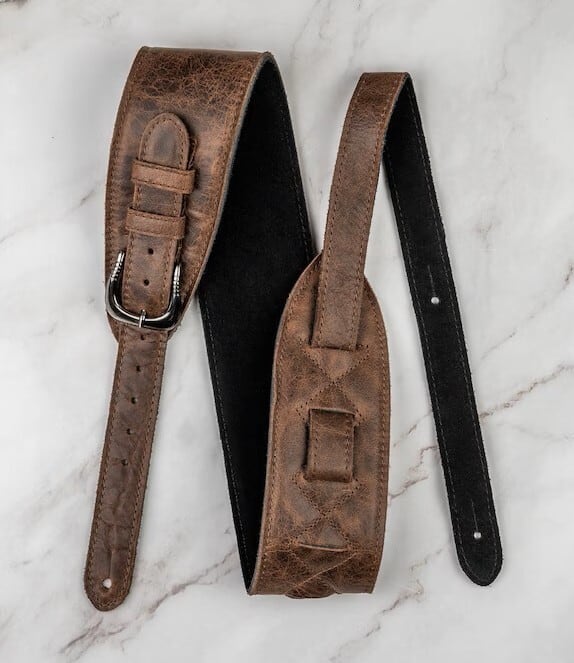 英国製でトップにはイタリア産のアンティーク調ガーメントレザー、ミドルには柔らかなスポンジ、ボトムにはグリップ力の高いスエードを使用。ミドルにスポンジを採用することで、抜群の快適性を実現し、長時間のギグにも最適です。