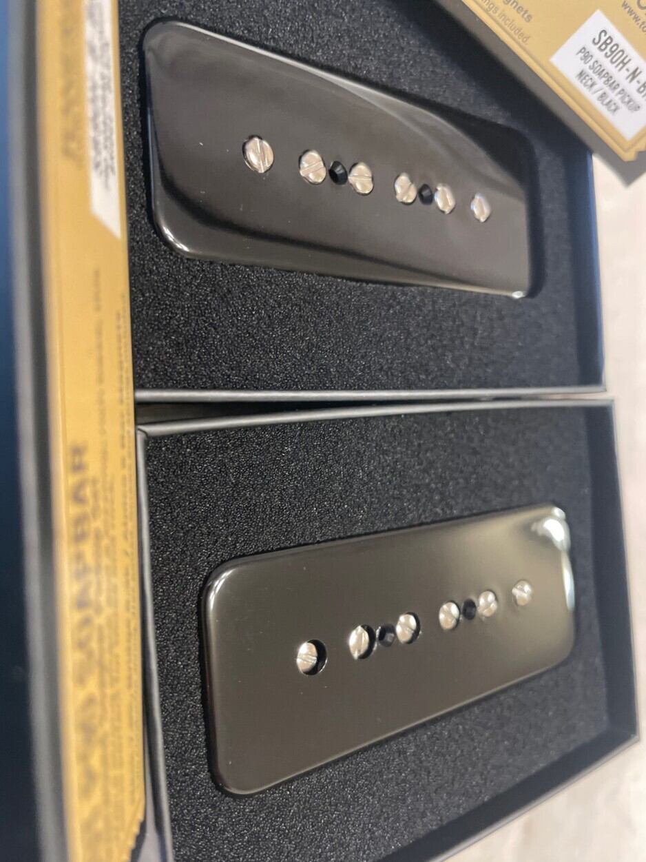 HOT90はオーバーワウンド仕様で、鋳造アルニコVバーマグネット2個を搭載しています。多くのP90よりもアタックが強く、よりジューシーで倍音豊かな低音を特徴とするこのセットは、ハードなブルースやロックを好むP90ファンに最適です。ネックピックアップはRWRPで、ブリッジピックアップをパラレル接続することでノイズキャンセリング効果が得られます。ヴィンテージ仕様のブラックカバーを装着。取り付け用のネジとスプリングが付属します。