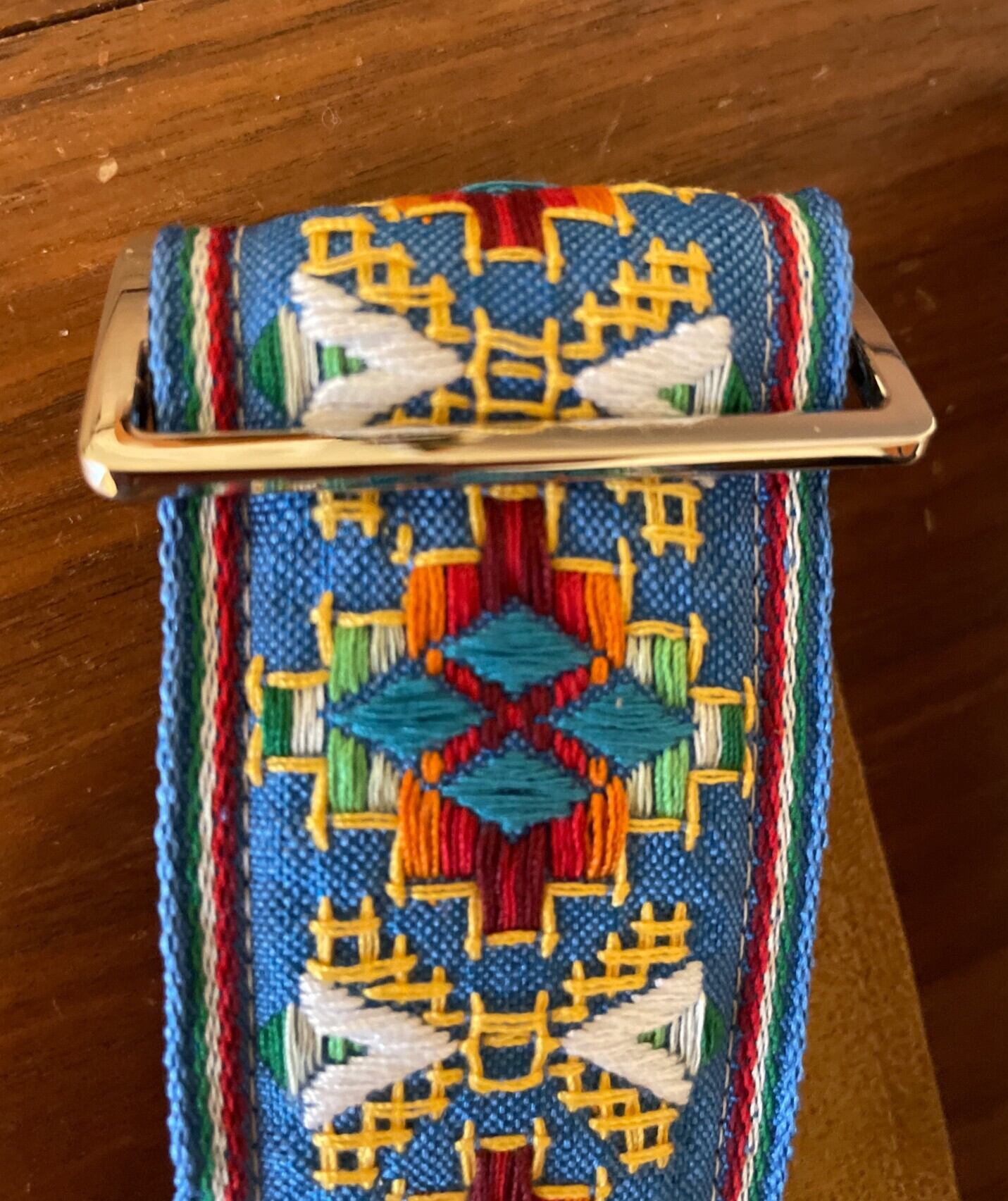 Tom’s Vintage Strapsはフランス、ストラスブールの小さな工房で一つ一つ丁寧に手作りされたギターストラップです。60年代から70年代にかけて数え切れないほどの象徴的なギタリスト(例えばエリック・クラプトン、ジミー・ペイジ、ジミ・ヘンドリックス、トム・ペティ、ジョン・メイヤー、キース・リチャーズ、カート・コバーン、ロビー・クリーガー、ロリー・ギャラガー、ボブ・ディラン、ジョー・ウォルシュ、ジョニ・ミッチェルなど)の使用によって有名になったヒッピー織りストラップの、最も本物に近い現代版レプリカです。主に60年代から70年代の New Old Stock (NOS) ファブリックを使用しており、ストラップエンドのレザーはカット、パンチング、仕上げの全てを手作業で行っています。