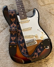 MeekosUK Black and gold jacquard guitar strap ギターストラップ UKハンドメイド