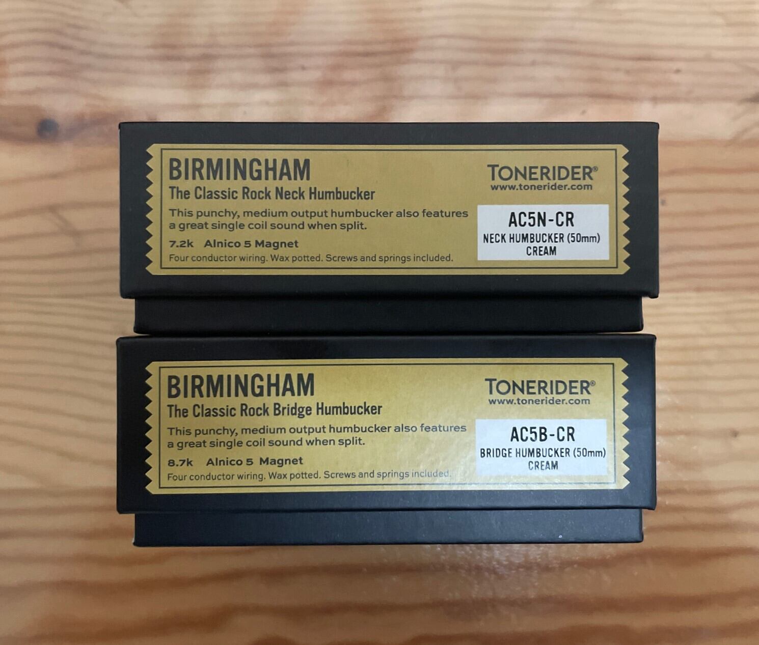 アルニコⅤを使用したパワフルなハムバッカーセットで、70年代の最高のトーン(アンガス、ジミー、トニーなど)を1つの素晴らしいセットにまとめたものです。ブリッジピックアップは9kΩ弱まで5%オーバーワウンドされており、十分なパワーと際立ったミッドレンジを提供しながら、チャイムのような高音域も保持しています。シングルコイルに分割するか並列に配線した場合、一部のハムバッカーを悩ませる大幅な音量低下なしに、シングルコイルのトーンを得ることもできます。ネックピックアップはブリッジピックアップに比べ5%アンダーワウンドで、明瞭且つ丸みがあり良く伸びるトーンになっています。