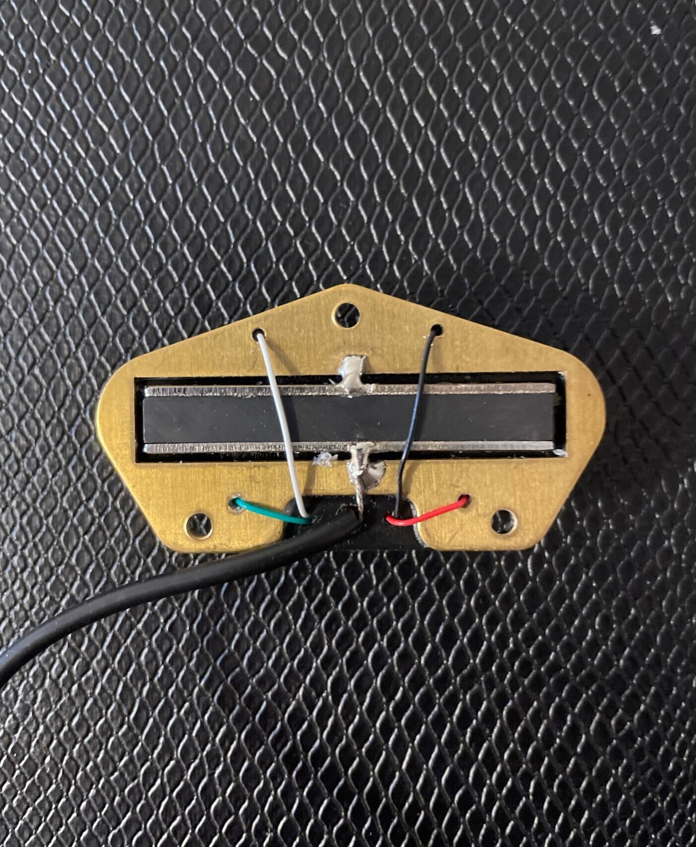 テレキャスターのサウンドを簡単にパワーアップできるシングルサイズのブリッジ用ハムバッカーです。標準的なテレキャスターのブリッジのドロップイン交換品として、ブリッジプレートにねじ込み、2か所のはんだ付けのみでまったく新しいキャラクターが与えられます。抵抗値約14kのこのピックアップは、完全な中音域、スムーズな高音域のレスポンス、そしてタイトな低音域を備えています。これらの特性により、最も歪んだ演奏にも最適です。もちろんハムバッカー仕様ですので、ゲインを大きくして演奏した際にシングルコイルで通常発生するようなハムノイズも発生しません。このピックアップは、スプリットモードとパラレルモード(高出力のおかげで非常に使いやすい)へのアクセスを可能にする4芯、高音をクリーンに保ち、低音のトラッキングを高速に保つセラミックマグネット、そして弦の半径に追従する二重半径ブレードを使用しています。