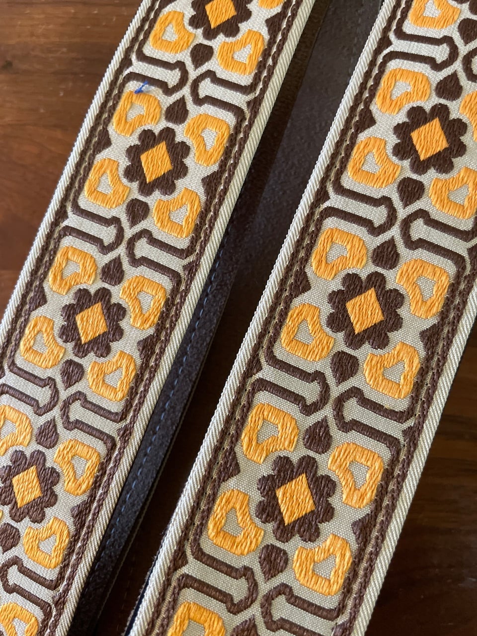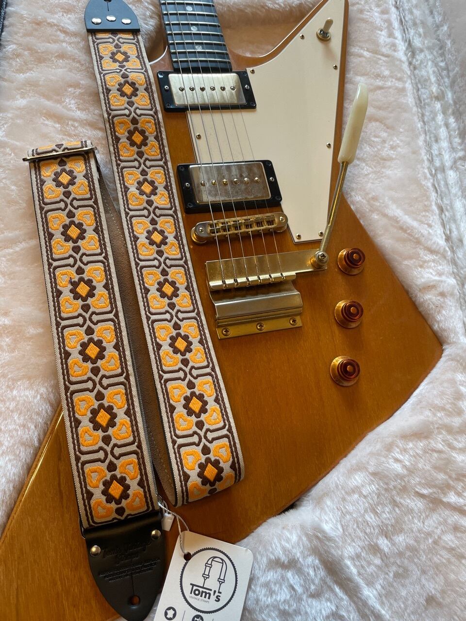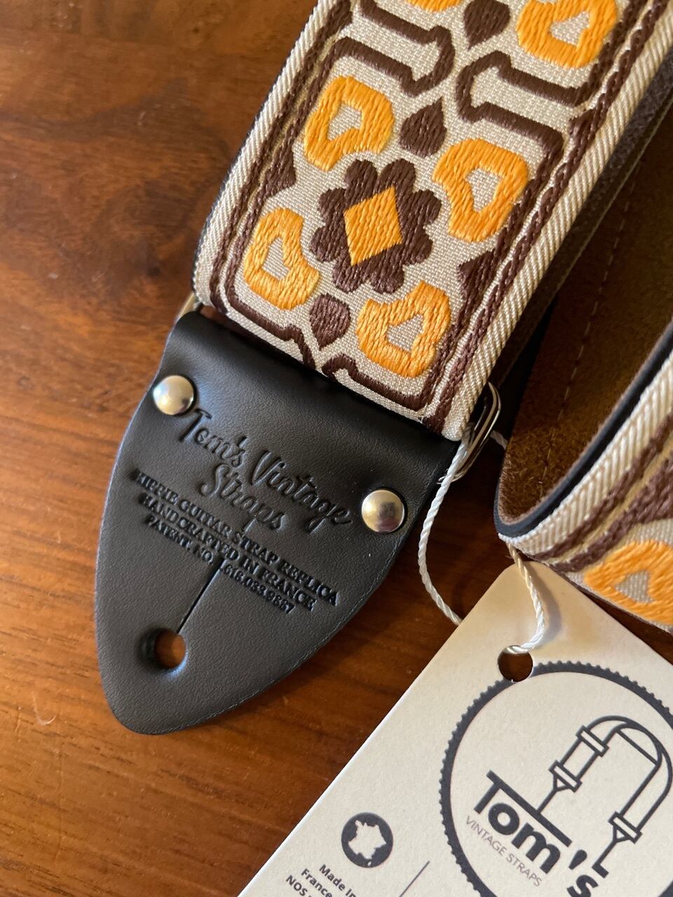 Tom’s Vintage Strapsはフランス、ストラスブールの小さな工房で一つ一つ丁寧に手作りされたギターストラップです。60年代から70年代にかけて数え切れないほどの象徴的なギタリスト(例えばエリック・クラプトン、ジミー・ペイジ、ジミ・ヘンドリックス、トム・ペティ、ジョン・メイヤー、キース・リチャーズ、カート・コバーン、ロビー・クリーガー、ロリー・ギャラガー、ボブ・ディラン、ジョー・ウォルシュ、ジョニ・ミッチェルなど)の使用によって有名になったヒッピー織りストラップの、最も本物に近い現代版レプリカです。主に60年代から70年代の New Old Stock (NOS) ファブリックを使用しており、ストラップエンドのレザーはカット、パンチング、仕上げの全てを手作業で行っています。