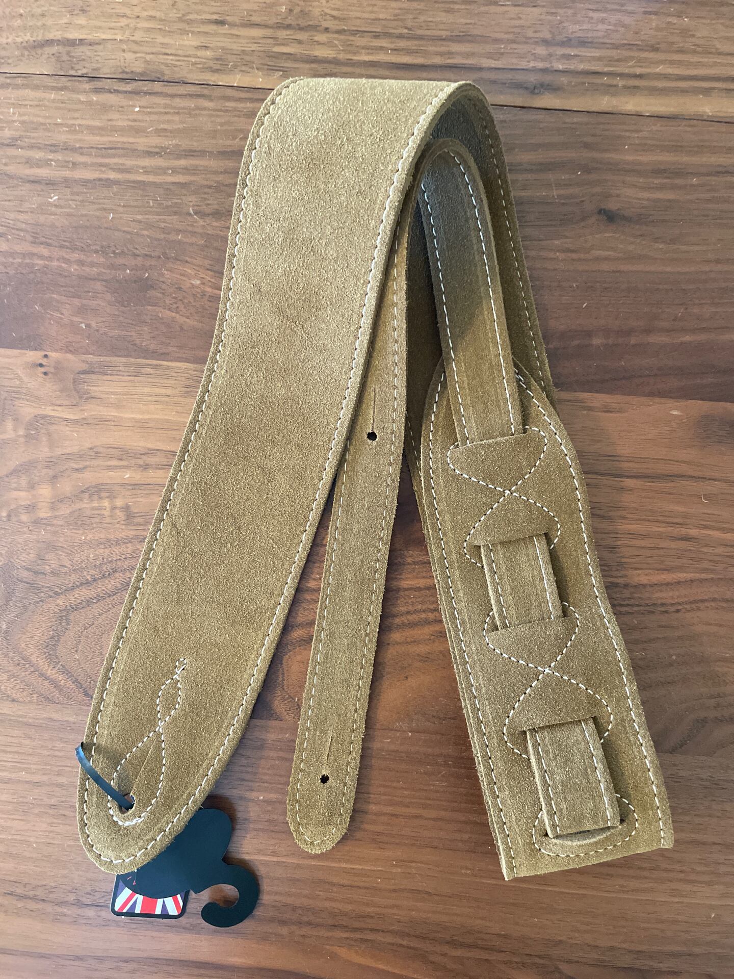 英国製のスエード製ストラップは、アコースティック、エレクトリック、ベースギターに適しています。スエードは非常に柔らかく快適で且つ丈夫さも備えており、ストラップが肩から滑ったり擦れたりすることがありません。